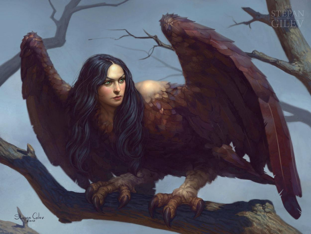 This also reminds me of Harpies who are often mixed up with sirens since they are both bird woman. Usually a harpy has more bird like features.