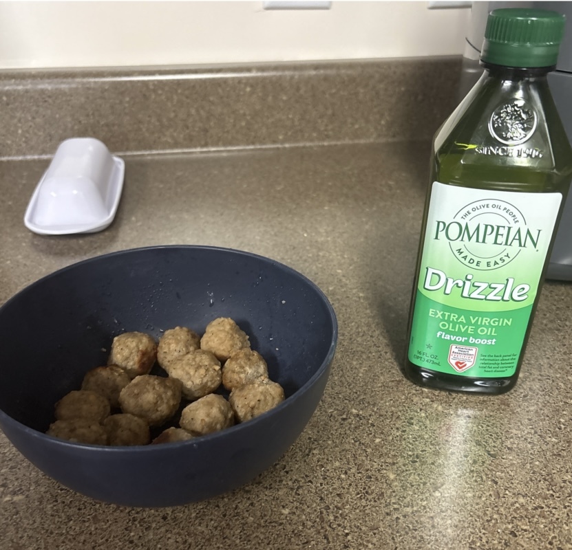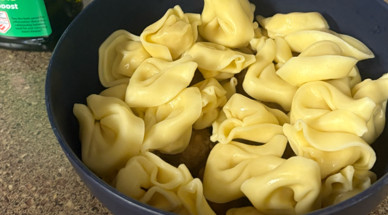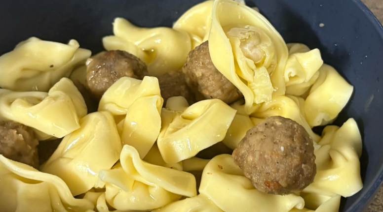 Drizzle with the olive oil and walla! Tortellini and meatballs!