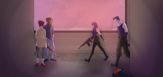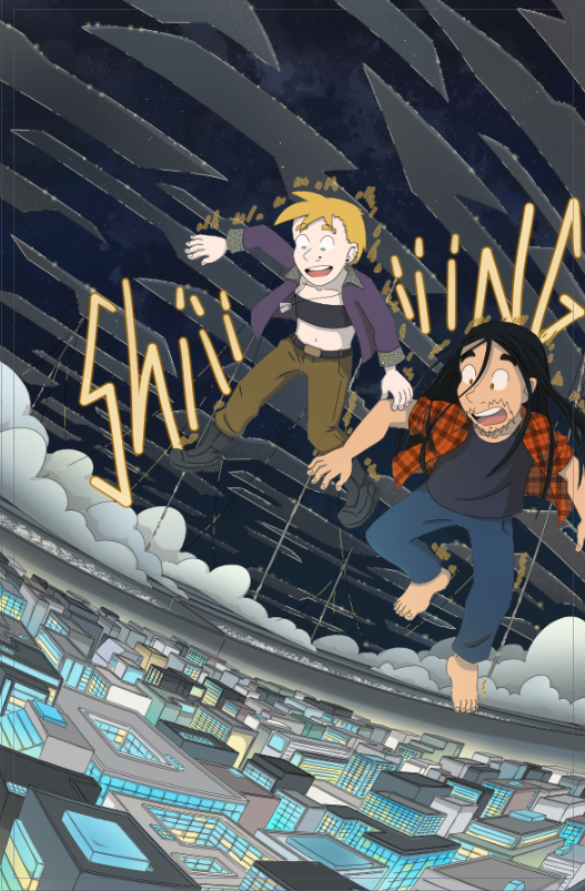 The background took longer to draw than the characters. Thanks to the zoom blur, perspective inconsistency and error is probably hidden