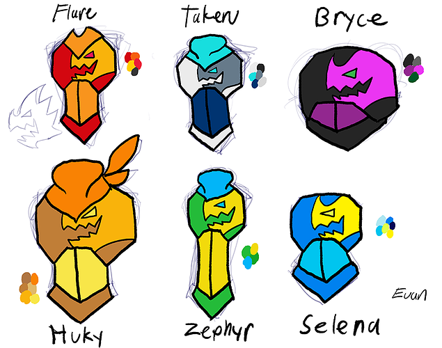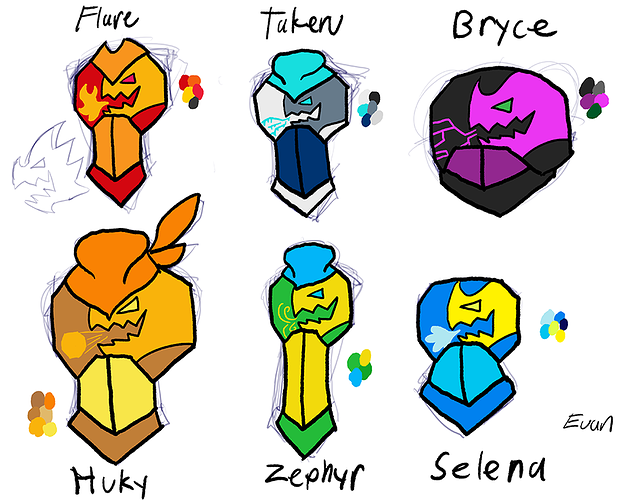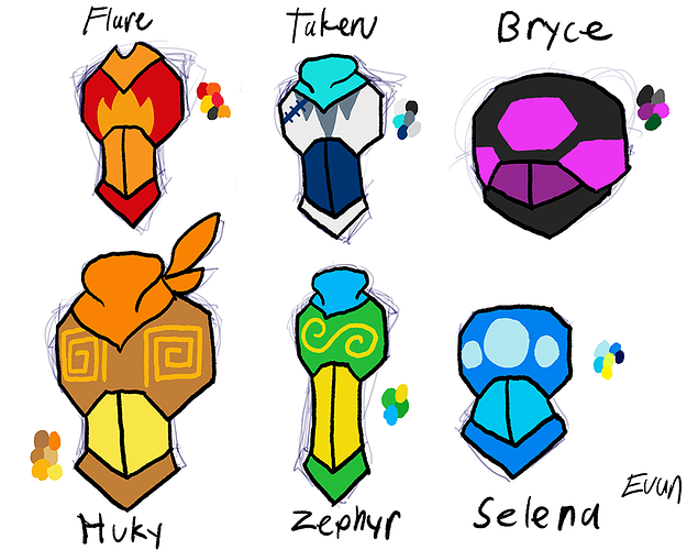 Thanks! I settled on the third one (Geometric elemental patterns). As for Selena, I am thinking of going for a more wave like pattern as a rework. I did circles as a test run because each of the team members are a associated with a different shape (Flare=Triangle, Takeru=Diamond, Bryce=Hexagon, Huky=Square, Zephyr=Wavy Line, Selena=Circle).