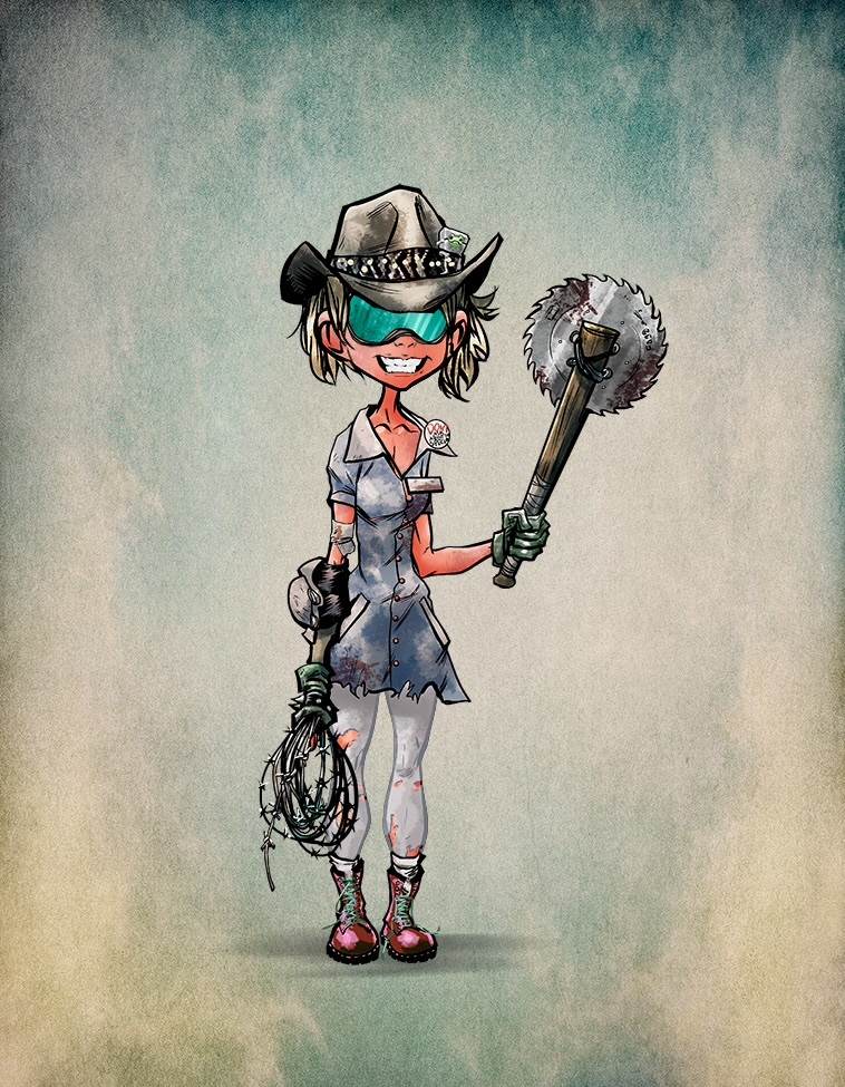 She needed supplies bad—bandages, food, maybe some clean water that didn’t glow. A half-collapsed supermarket sat a quarter-mile off, its neon sign flickering like a dying heartbeat. But the open ground between her and the store was a kill zone. Marauders loved perching in the jagged remains of skyscrapers, picking off idiots who didn’t know better. Daisy adjusted her tattered nurse dress, the hem crusted with blood—some hers, most not. Her boots scraped softly as she dropped into a shallow ravine, barbed wire whip coiled at her hip. “Gotta move fast, Daisy girl,” she whispered to herself, voice low and rough.