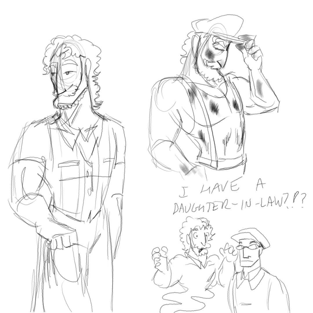 This is the first design I've made for Otto's dad. He's Ashkenazi Jewish, and this may not be the design I keep for him. Dude's a factory worker. Ignore ghost dad. Ghost dad is not canon.