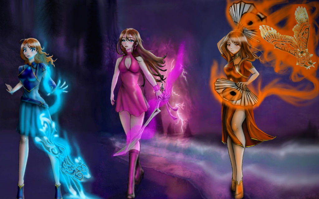Becky, Kaysi, Micah This is still in progress I will have all 8 of my characters on this piece.